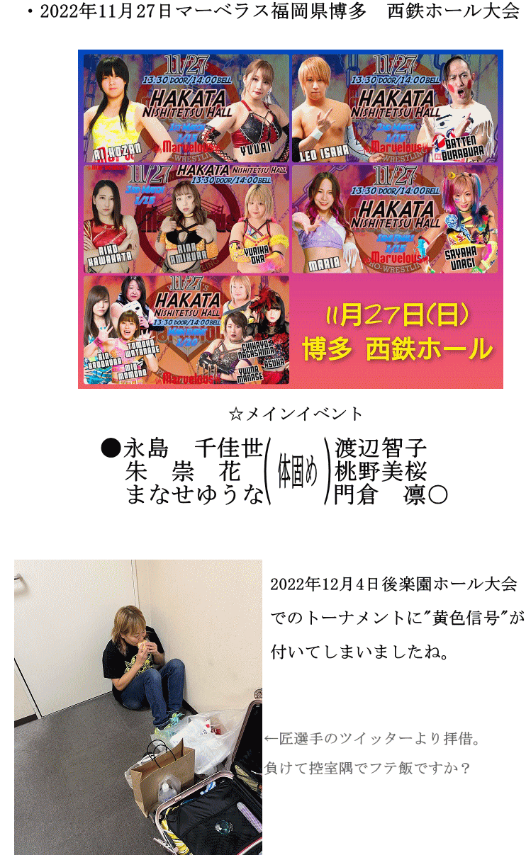 | 2018年11月4日(日) | センダイガールズプロレスリング | 福岡県・博多スターレーン |